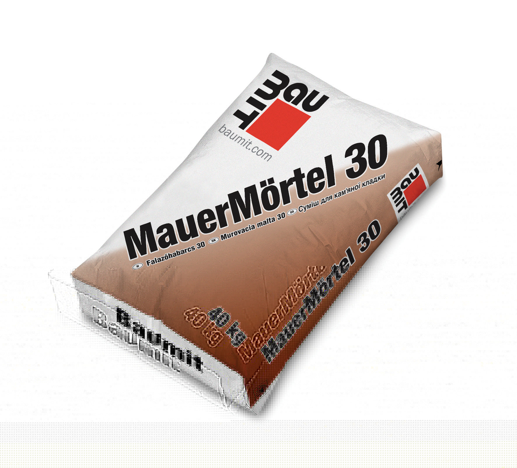 MauerMörtel 30 (Baumit Falazó Habarcs 30)Egyszerű statikai követelményeknek megfelelő, gyárilag kevert mész-cement habarcs (MSZ EN szerint M2,5). A jól hőszigetelő falazóelemekhez a Baumit ThermoMörtel 50 habarcsot javasoljuk.
