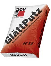 Menny. egység: zsák Cikkszám: BAUMI0065 Mennyiség Termék csoport: AlapvakolatokGyártó: BaumitLeírás: Baumit Gipszes vakolat 40 kg (GlättPutz) Gyárilag előkevert, magas minőségű, egy rétegben alkalmazható gipszes alapvakolat. Meghúzás után nedves szivaccsal visszadörzsölve anyagában glettelhető. Anyagszükséglet: kb. 11 kg / m2 / cm