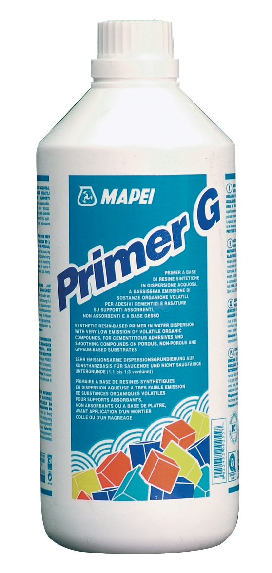 Nagyon alacsony illékony szervesanyag kibocsátású (VOC), műgyanta bázisú diszperziós alapozó. Alkalmazási terület: Gipsz vagy anhidrid felületek kezelése cementtartalmú termékek felhordása előtt. A kezelendő felület legyen tiszta és nedvszívó. A Primer G-t hígítsa vízzel 1:1-től 1:3-ig arányban régi porózus padlók védelmére az aljzatkiegyenlítés előtt, a pormaradványok fixálására és az aljzat nedvszívó képességének egyenletessé tételére aljzatkiegyenlítés vagy ragasztás előtt. Tökéletesen száraz (0,5%-nál kevesebb maradék nedvességtartalmú) gipsz vagy anhidrid felületekre hordja fel. Az aljzat legyen tiszta, száraz, és az olajtól, zsírtól, festéknyomoktól illetve laza részektől mentes. Műszaki adatok Állag: folyékony. Szín: világoskék. Gyúlékony: nem. Bedolgozási hőmérséklet: +5°C és +40°C között. Száradási idő: 2 óra, a hígítástól és az aljzat nedvszívó-képességétől függően. EMICODE: EC 1 – nagyon alacsony kibocsátású. Eltartható: 24 hónapig. Védje a fagytól. Felhordás: hengerrel vagy ecsettel. Anyagszükséglet 0,1-0,2 kg/m2 a használattól függően. Kiszerelés 25 – 10 – 5 – 1 kg-os műanyag kannák.